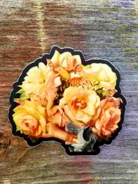 2.5 x 3 inch diecut sticker of an original handcut collage.