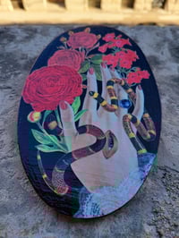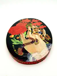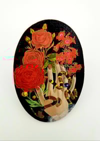 This collage was created with hand-cut vintage paper, acrylic paint, acrylic ink, and upcycled or found supports ( the surface on which they are attached ). Each piece has wire or some other hardware on the back to hang on the wall. Due to differences in monitors, colors may vary slightly from actual collage.